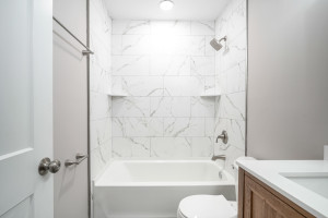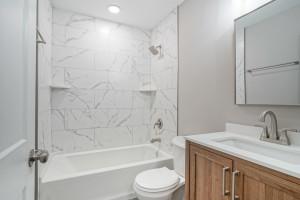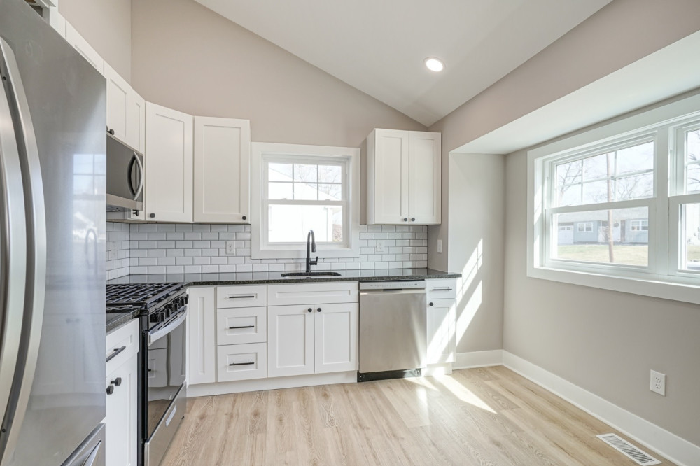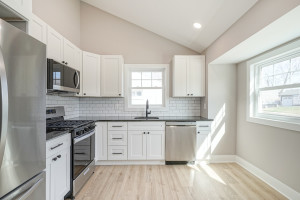 Like new construction without the price tag! Major renovations have been completed and the moment you pull up to this charming 3 bedroom, 2 bath split level home you will notice attention to detail! Engineered hardwood flooring throughout most of this home as well as recessed lighting and a neutral paint palette. The living area features a soaring vaulted ceiling and the eat in kitchen boasts all new white cabinetry, stainless steel appliance, subway tile backsplash and granite counters. A few steps downstairs is the spacious family room area with full remodeled bath complete with custom tiled shower and new vanity. There is also access to the mudroom and huge backyard ideal for entertaining and outdoor activities. Upstairs is the main bedroom, and 2 additional generous sized bedrooms featuring new carpet, as well another fully remodeled bathroom. One car garage, new HVAC and upgraded electrical make this home an even better value. Convenient location to all major routes, shopping and dining. A great place to call home!
