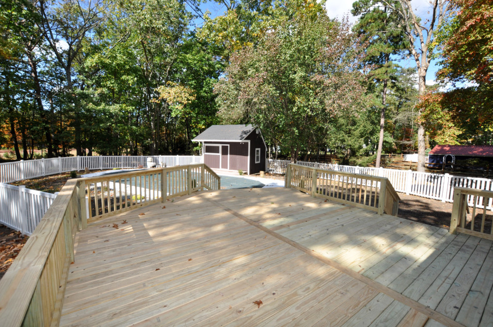Welcome to 61 Red Oak Dr! A completely renovated interior and exterior awaits in this 4 Bedroom, 3 Bath Cape Style home situated on 1 acre of land complete with inground pool! Enter to find hardwood flooring throughout the main level and a light, bright and neutral paint palette with plenty of natural light. The kitchen features granite counters and oversized granite island, as well as an abundance of cabinetry, tile backsplash and new stainless steel appliances. The eating area has access to your backyard oasis through sliders and an open layout to family area with wood burning stove, brick surround and custom millwork and shelving. Speaking of the backyard, a brick patio and walkway leading to an inground pool with brand new liner and convenient shed for extra storage as well as plenty of yard make for a fabulous entertainment area! The main level also boasts an elegant owner's suite with an absolute show stopper private bath with marble flooring, architectural ceiling with upgraded lighting, modern soaking tub, upgraded vanity and custom marble oversized shower as well as a separate water closet. A second bedroom and another updated full bathroom are located on the main level as well. Upstairs you will find 2 additional generous sized bedrooms and another spacious updated full bath. New roof, new septic and new HW heater make this home an even better value. Conveniently location close to parks, fields and easy access to town as well as a highly rated school district. A great place to call home!