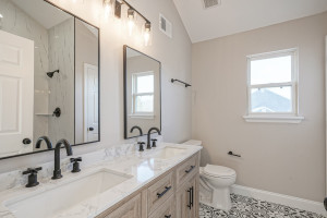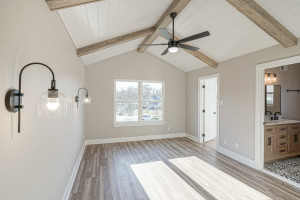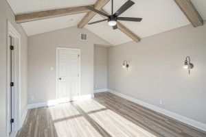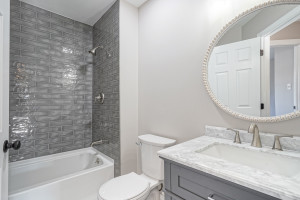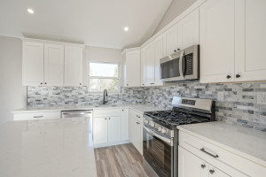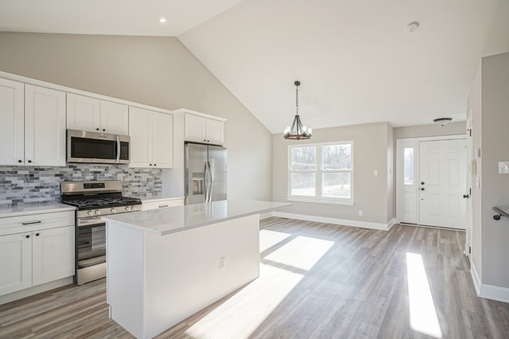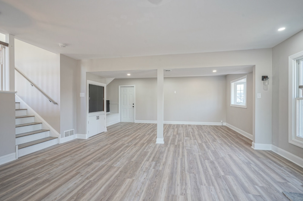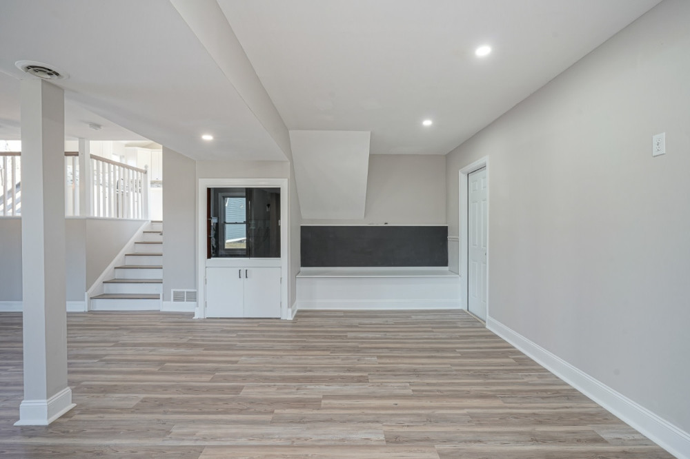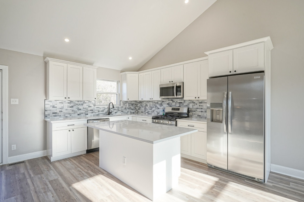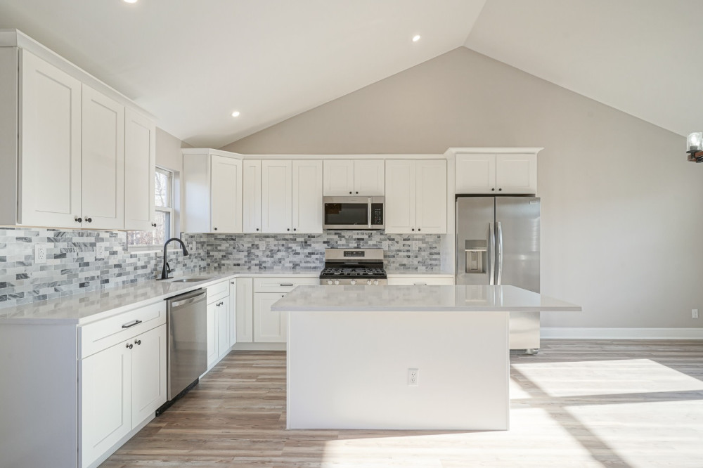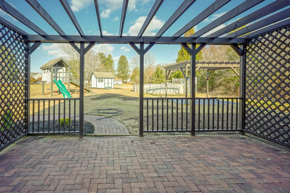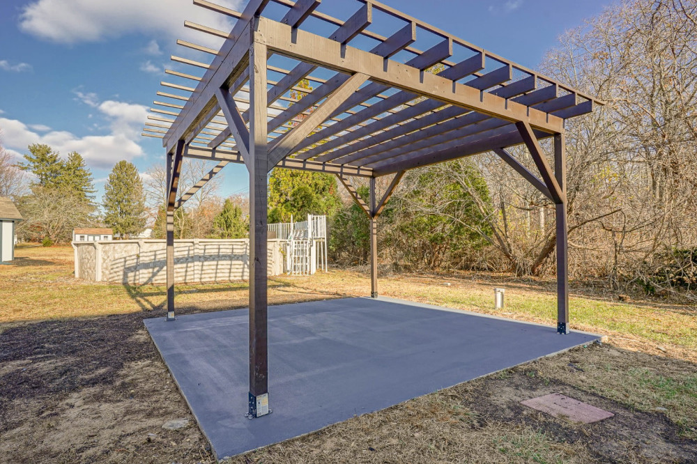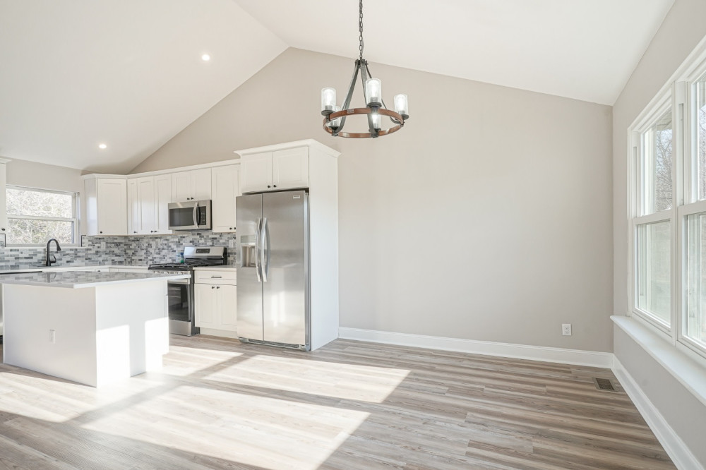 Prepare to be impressed! This spacious 3 bedroom, 2 bath home, situated on a 1 acre lot, has been completely renovated with today's most modern finishes! Enter to find engineered flooring throughout the main level featuring a gorgeous white kitchen with an abundance of cabinetry, granite center island, and stainless steel appliances. There is a living/dining area as well as a breakfast area, all light bright and neutral. There is also a door with access to the backyard A few steps down is the family room boasting a stone fireplace and access to the backyard patio and yard ideal for entertaining with above ground pool and plenty of space for activities! Down a few more stairs is additional finished space which can have many uses including gym, office, media or simply additional storage. Upstairs, the Primary Bedroom features architectural wooden beams and a sumptuous private bathroom with decorative tile flooring, oversized marble shower, and stunning double vanity. There are 2 additional generous sized bedrooms and a hall bathroom with custom tiled tub/shower combo and vanity. The laundry room is also conveniently located upstairs as well. Recessed lighting througout. Solar panels fully paid for and convey with the home